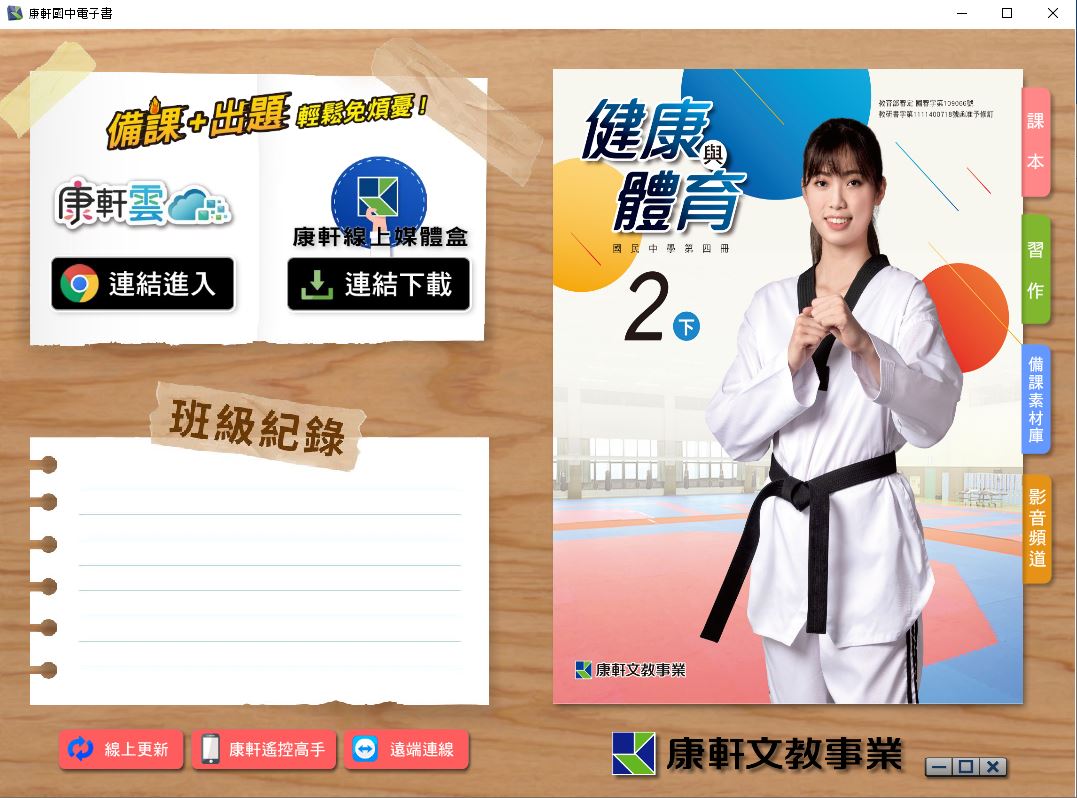 111學年下學期 國中 康軒版 健康與體育電子書 2年級(含課本、習作含解答、教學資源)教學光碟