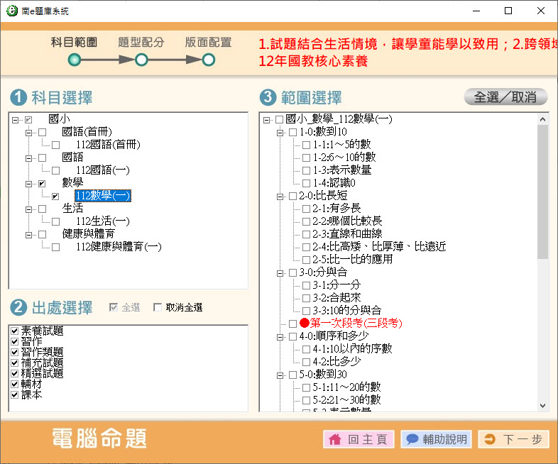 112學年上學期 國小命題光碟 南一版 1年級 題庫光碟