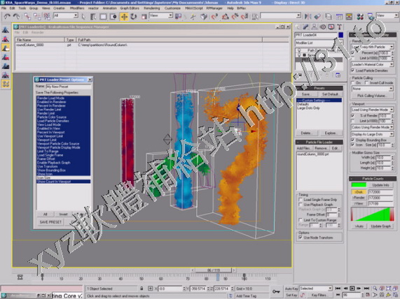3ds Max記憶體和系統的限制;PRT粒子資料格式,NextLimit的RealFlow 3、4和5粒子
