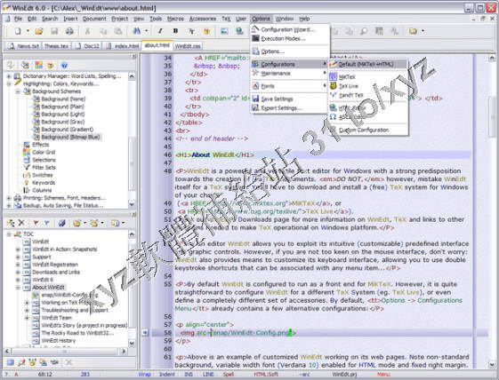 typesetting systems, such as TeX or HTML. WinEdt's