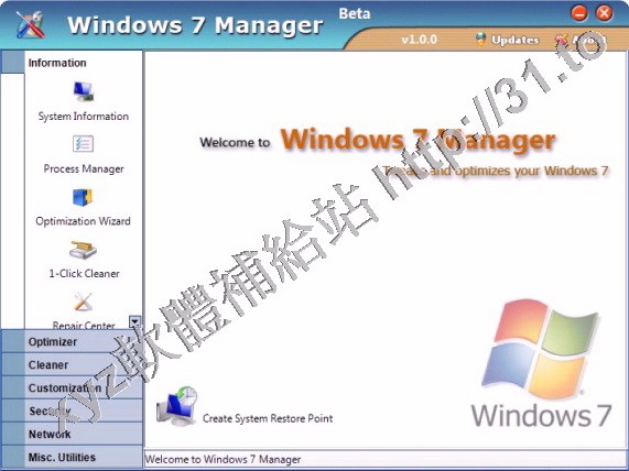 • Yamicsoft Windows 7 Manager v3.0.9.0 英文正式版(Widnows7 總管是優化和設置軟體)
